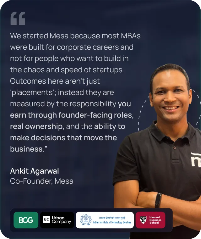 If a student chooses to pursue a role after the program, Mesa’s Career Prep and sourcing team (from the PGP in Startup Leadership & Entrepreneurship) supports them end to end—preparing them for interviews, helping source entry-level operator roles, and continuing support during the first year on the job. These roles often come with significant responsibility and fast growth.